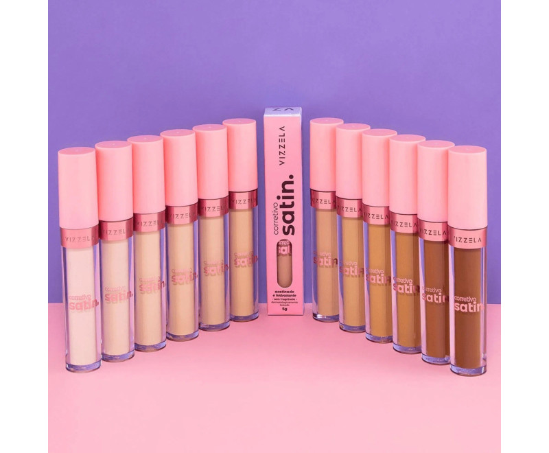 O Corretivo Satin possui um acabamento acetinado com alta cobertura, deixando a pele com um toque de radiancia devido ao ativo Gatuline Radiance®, além da hidratação instantânea promovida pela combinação de ácido hialurônico e biosacarídeo. E a rosa mosqueta que auxilia no tratamento das olheiras.