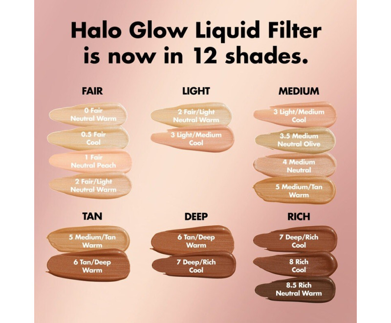 Você pediu, nós brilhamos - nosso filtro líquido Halo Glow agora está disponível em 12 tons para se adequar a uma variedade de tons e subtons de pele! Este inovador híbrido de intensificador de tez e maquiagem para cuidados com a pele é infundido com esqualano e ácido hialurônico. A fórmula única melhora a aparência geral da pele, ao mesmo tempo que confere um brilho suave. Use sozinho, por baixo ou por cima da maquiagem; misture com sua base favorita para um acabamento úmido ou use como iluminador para iluminar os pontos altos do seu rosto.
