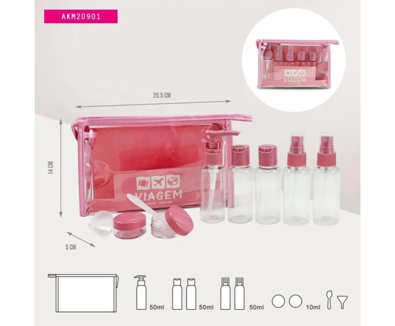 KIT FRASCOS VIAGEM 10 PEÇAS ROSA AKM20901 - Jacki Design