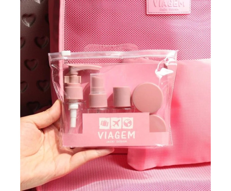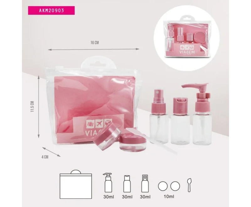 KIT FRASCOS VIAGEM 7 PEÇAS ROSA AKM20903 - Jacki Design