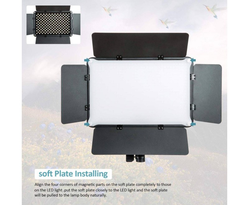 O Iluminador de LED Profissional Viltrox VLD640T com Controle Digital de Ajuste de Brilho e Temperatura de Cor (Fonte Bivolt) é um LED Video Light Ultra-Fino e Leve de alto brilho que adota Lâmpadas LED de alta qualidade que reduzem consumo e possui maior durabilidade do equipamento. Acompanha um Controle Remoto Digital para justes de Temperatura de Brilho. A temperatura de Cor Bicolor (3300K ~ 5600K) você pode alternar de luz quente para branca livremente e o brilho pode ser ajustado à vontade de 20% a 100% de acordo com às suas necessidades. É adequado para Filmagens dando uma grande variedades de cenas de vídeo, como em Fotografia Profissional. Possui placa de filtro magnético branca, pode ser facilmente anexada na luz de vídeo, tornando a iluminação mais suave e uniforme.