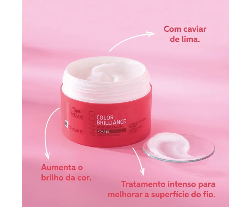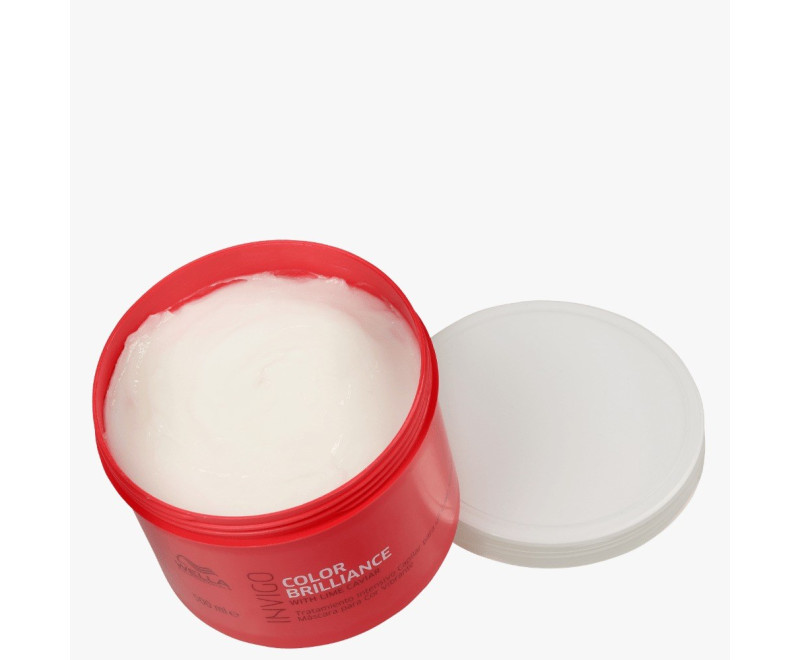 Wella Professionals Invigo Color Brilliance Mask proporciona proteção da cor por até 7 semanas. Ela tem uma fórmula rica em vitaminas que nutrem o cabelo. Seus fios ficam saudáveis, protegidos do desbotamento e com a cor linda.
