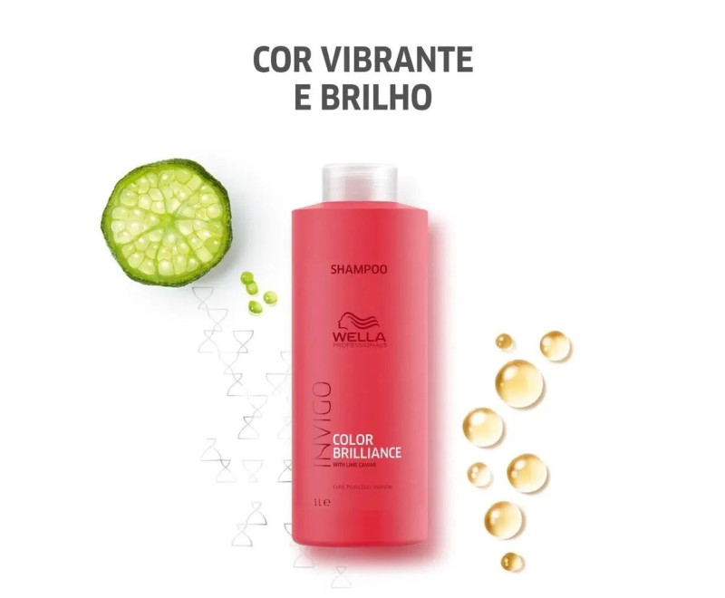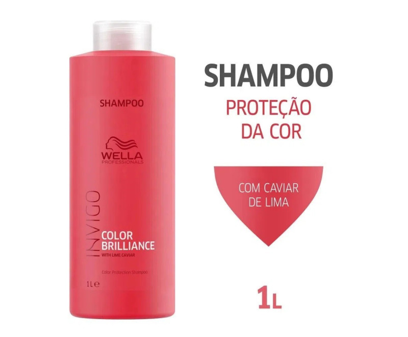 Shampoo para cabelos coloridos. Wella Professionals Invigo Color Brilliance Shampoo limpa os fios de forma otimizada para proteger do desbotamento. Ele consegue preservar a cor vibrante por até 7 semanas. Wella Professionals Invigo Color Brilliance Shampoo tem uma fórmula que ajuda a fechar as cutículas dos fios para que eles consigam reter melhor a coloração. Assim, seu cabelo fica limpo, com um brilho bonito, toque macio e cor duradoura. Outro grande diferencial da linha é o perfume sofisticado, um amadeirado cítrico floral. Bruno Lotufo, embaixador de Wella Professionals que assinou o visual da campanha, diz: “Invigo Color Brilliance tem uma fragrância muito boa e, outra coisa que gostei muito, é a leveza do produto. Ele trata sem pesar”. Caviar de Lima: possui alta concentração de vitaminas e antioxidantes, que ajudam a prolongar a vivacidade da cor e proteger. Histidina e Vitamina E: ajuda a controlar o processo de oxidação dos fios após a coloração a fim de proteger a cor. Moléculas Encapsuladas de Cobre: mantêm o tom vibrante. Aplique o shampoo pelo cabelo úmido. Massageie gentilmente para fazer espuma. Em seguida, enxágue. Se necessário, repita o processo.