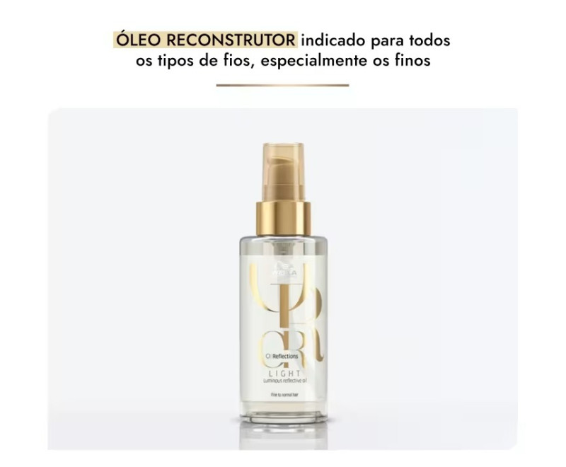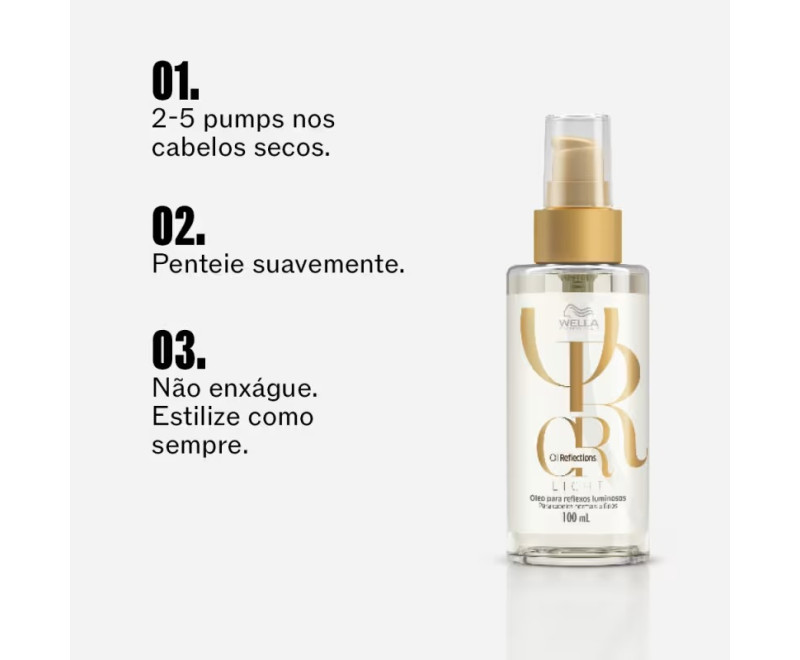 Disponível: óleo Wella Oil Reflections Light 100ml e 30ml.