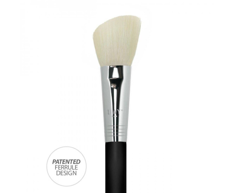 Pincel ideal para marcação de blush e marcação em pó. Cerdas sintéticas micronizadas DAYTECH Soft Fibers, cabo de madeira com ponteira em cobre prata.