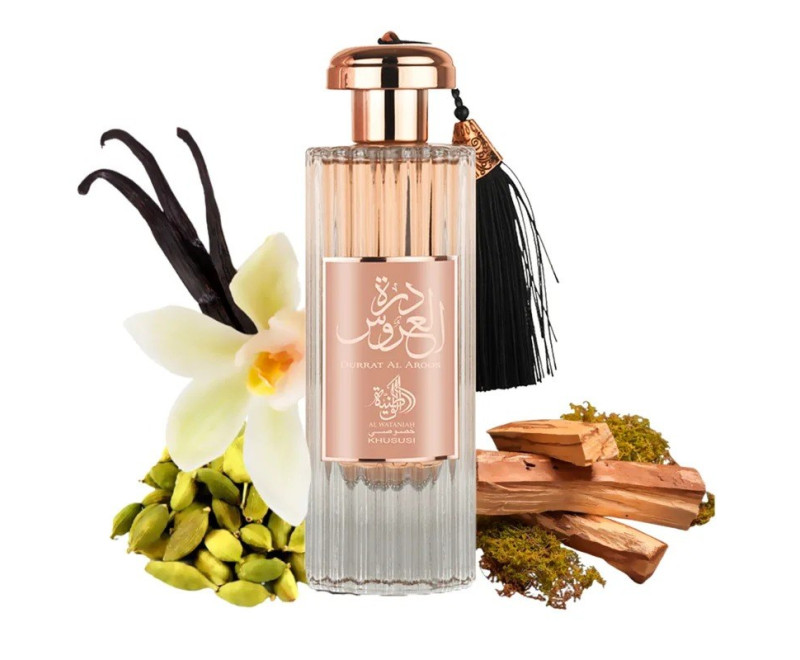 Durrat Al Aroos faz parte da linha Dubai de Al Wataniah. Originário dos Emirados Árabes Unidos, Al Wataniah nasceu do desejo de entregar ao mundo elegantes fragrâncias com um toque místico, sedutor e de alta qualidade. Possui perfumes que combinam as melhores notas francesas com notas orientais, desenvolvidos por perfumistas de renome em todo o mundo. Suas combinações exclusivas são intensas e viciantes, cativando os que ousam se deixar seduzir por sua magia.
