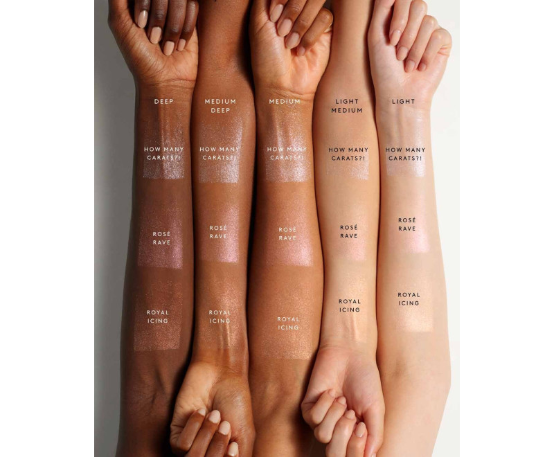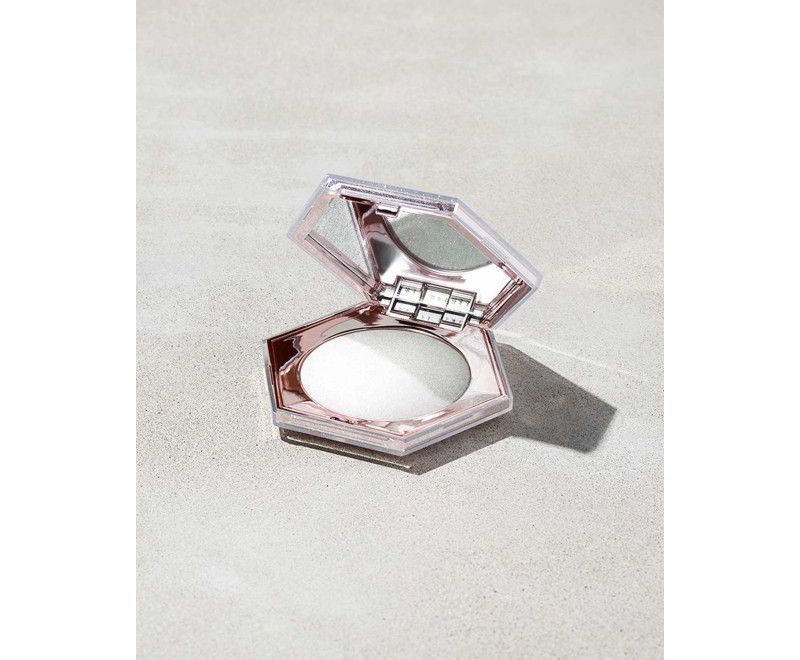 Um iluminador único com pó de diamante que se aplica como um véu brilhante 3D, proporcionando um brilho puro e impressionante em todo o rosto e corpo.