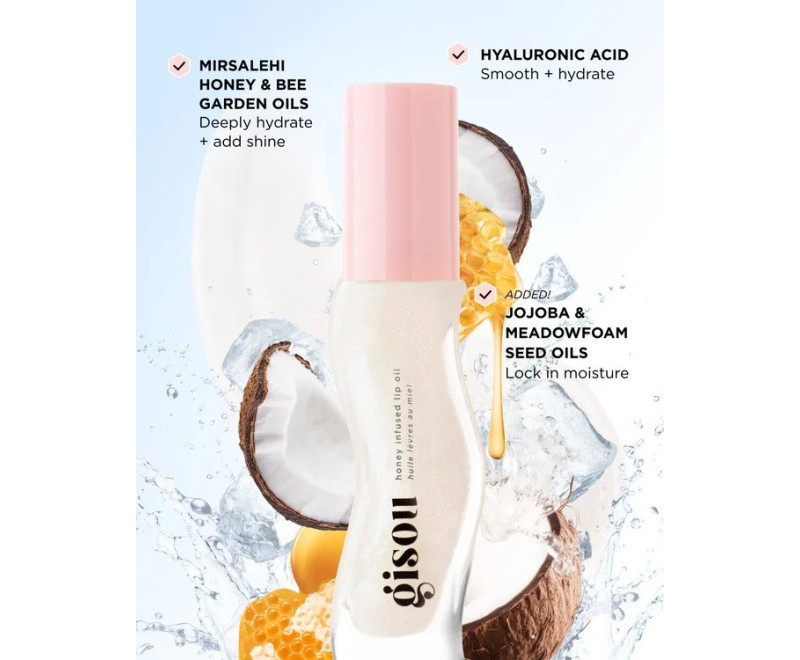 Descubra o óleo labial mais brilhante e suculento com mel Mirsalehi - com o aroma delicioso e o tom suculento da fruta colhida pela comunidade Gisou e inspirada nas abelhas melíferas.