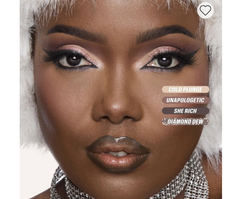 Nossa paleta Icy Nude é repleta de sombras inovadoras, suaves e intensamente pigmentadas, em várias texturas, desde bio-litters e mattes até cintilantes derretidos e brilhantes, em tons de prata, cinza, platina, nude, bordô, rosa e branco para uma vibe totalmente gelada.