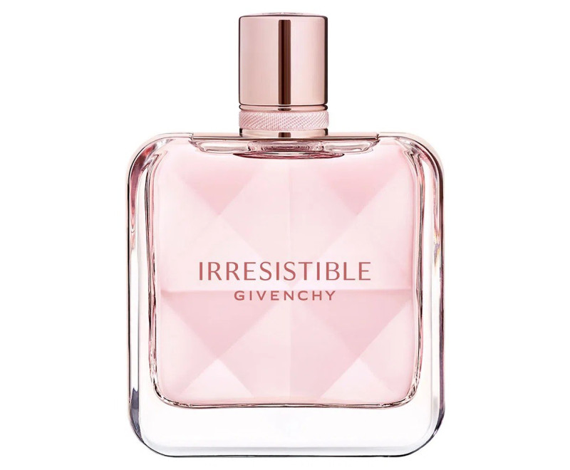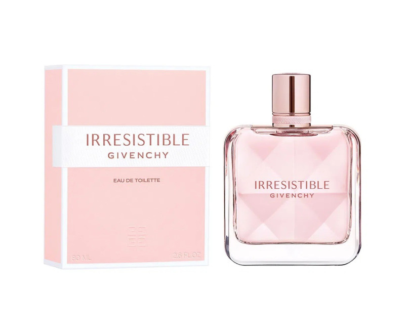 O frasco de Irresistible traz uma silhueta quadrada, que segue o mesmo design da linha, com ângulos inspirados na reinterpretação do código chave do prisma, querido por Givenchy. A transparência do vidro facetado reproduz em nuances o tom rosado de um conteúdo luminoso e o detalhe da fita na pescoço resolutamente de alta costura, para destacar este perfume de linhas finas, delicadas e ao mesmo tempo poderoso.