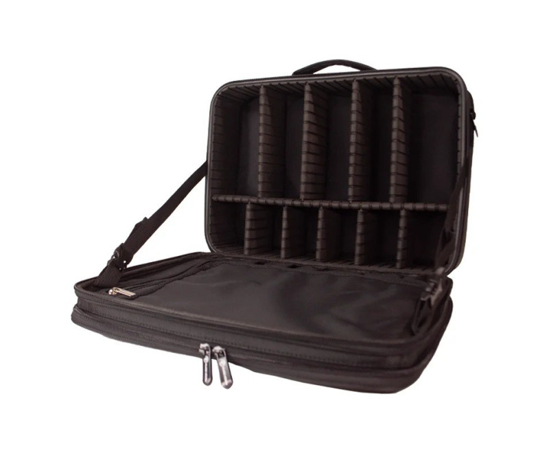 Essa Bolsa Organizadora conta com 2 repartições com diversos espaços para guardar e transportar todos os seus acessórios.