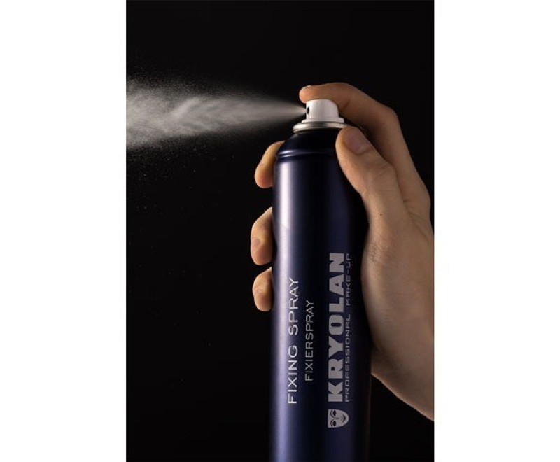 Fixing Spray é uma preparação especial para aplicação sobre a maquiagem. Ela cria uma película protetora invisível, que prolonga a duração da maquiagem e seus efeitos. Fixing Spray é particularmente eficaz para pintura corporal com Aquacolor e com outras preparações úmidas de maquiagem. Fixing Spray é aplicado de uma distância de aproximadamente 30 cm de maneira fina e igual e deixe secar. A maquiagem protegida fica, então, à prova de esfregões e resiste até a efeitos severos e exposição. Fixing Spray deixa qualquer maquiagem resistente a água fria e retarda consideravelmente a deterioração da maquiagem na pele como resultado da perspiração. Fixing Spray contém álcool e não deve ser aplicado perto dos olhos ou mucosas. Fixing Spray pode ser facilmente removido com sabonete e água quente.