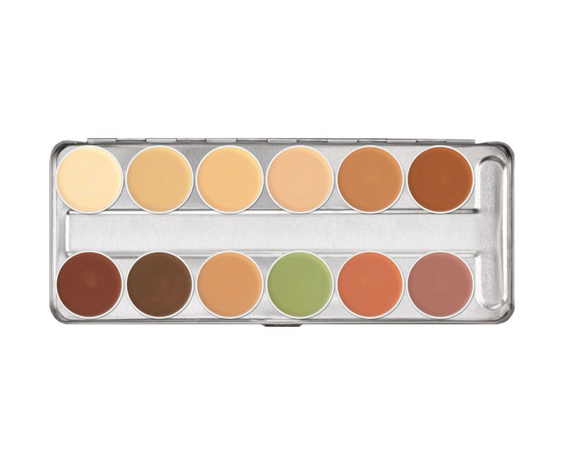 Dermacolor Camouflage Creme Palette é ideal para uso profissional. Dermacolor Camouflage Creme é uma maquiagem especial altamente pigmentada desenhada para corrigir e cobrir desfigurações, descolorações e tatuagens na pele. Dermacolor Camouflage Creme é especialmente adequado para rosto e pescoço. Com o uso adequado de Dermacolor Camouflage Creme, anormalidades na pele podem ser facilmente corrigidas. Assim que Dermacolor Camouflage Creme é fixado com Fixing Powder e Fixing Spray da Dermacolor, ficará à prova d'água e protegerá a pele contra radiação UV nociva. Dermacolor Camouflage pode durar mesmo sob condições extremas como piscina, calor e esforço físico. Dermacolor Camouflage Creme está disponível em uma ampla gama de tons que podem ser misturados, dando à maquiagem uma aparência natural quando aplicada corretamente. Essas paletas podem ser substituídas individualmente usando Dermacolor Refills.