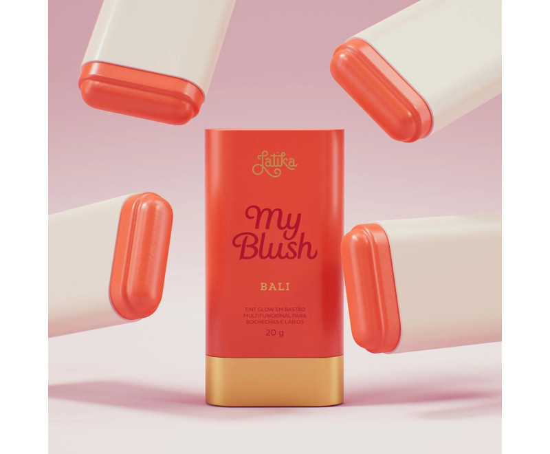 Latika My Blush é um blush tint cremoso em bastão que proporciona uma cor corada e saudável para as bochechas e lábios