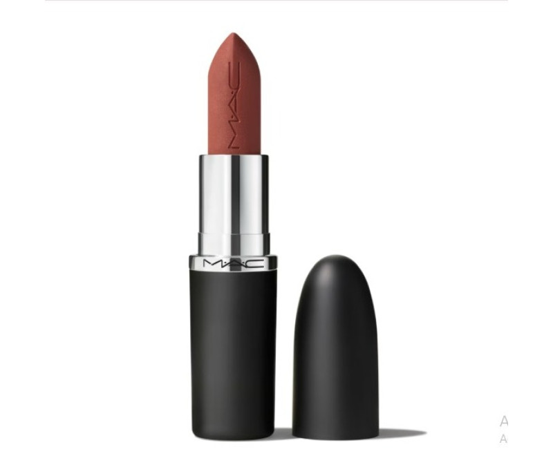 MAIS LUXO com uma embalagem brilhante e a marca M·A·C gravada na bala do batom.