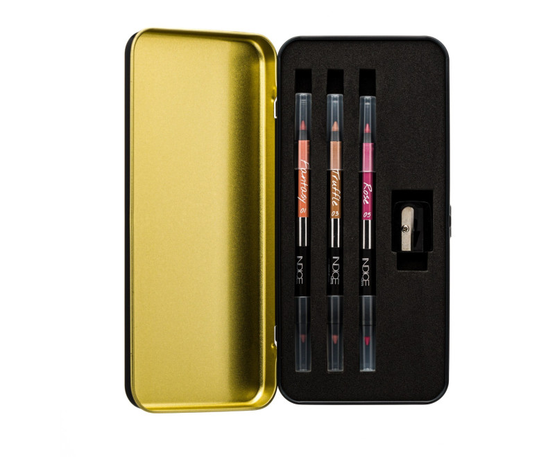WISH Double Lip Pencil. Possui fórmula à prova d'água, alta cobertura, garantindo um traço marcante e resistente à água. Assim, deixando sua maquiagem de altíssima qualidade.
