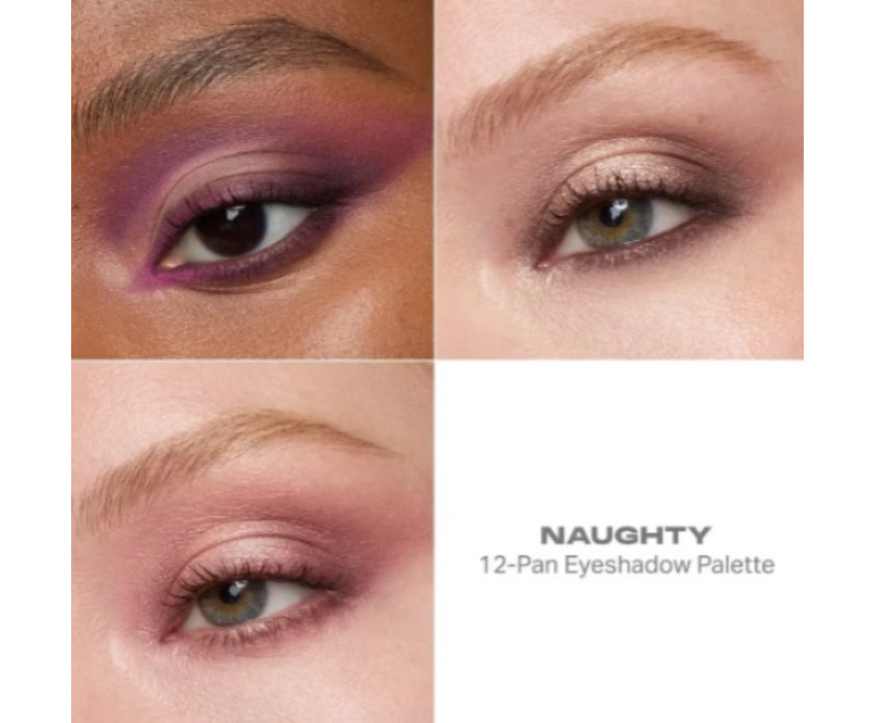 A paleta de sombras Naughty, perfeita para festas, da Morphe, é uma curadoria de 12 tons neutros em tons de rosa e toques alegres de rosa, com acabamentos matte suave, metálicos deslumbrantes e novos acabamentos de sombras de cobertura brilhantes.