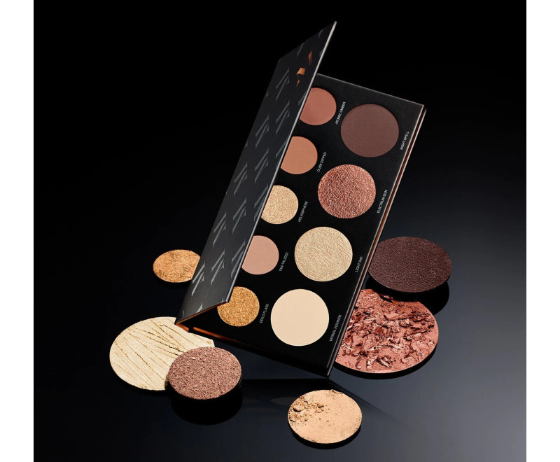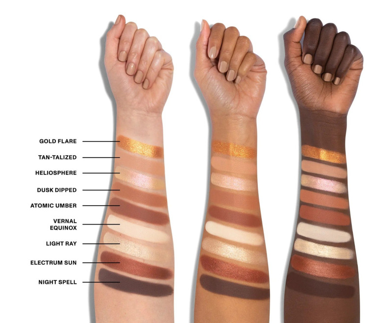 Paleta compacta de nove tons entre neutros bege quente, marrom, dourado e bronze essa combinação de cores coloca o poder da arte na palma da sua mão com uma gama de acabamentos de sombra.