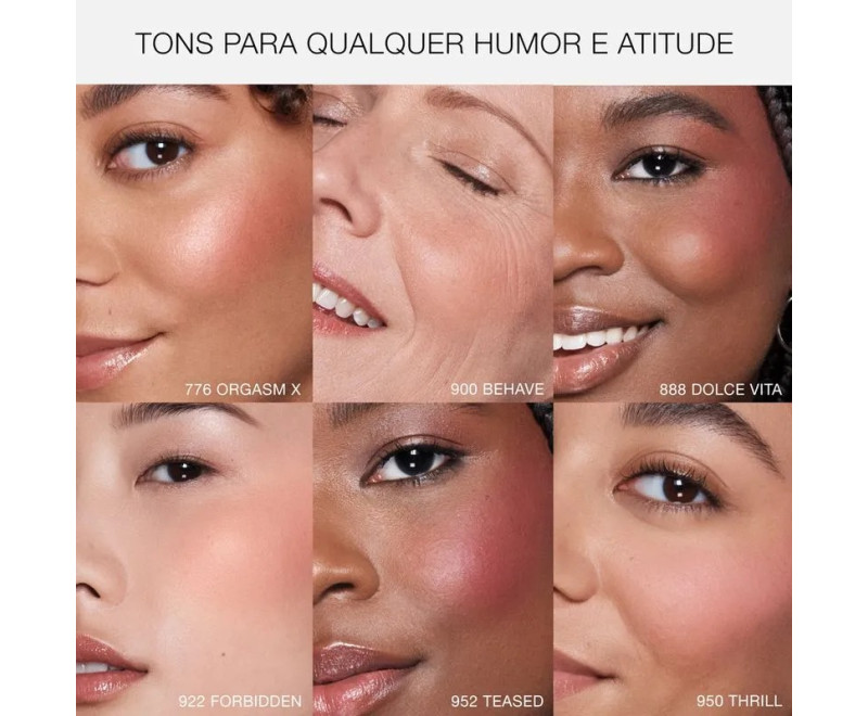 A NARS é a autoridade suprema blush. Descubra o produto icônico, agora reinventado em uma fórmula aprimorada. Com 14 tonalidades best-sellers, o NOVO Blush dura até 16 horas com uma sensação confortável e leve. A Pure Pigment Blend, uma combinação inovadora de quatro tipos de pigmentos, atinge um alto impacto com cor verdadeira. A fórmula irresistivelmente sedosa e fácil de esfumar desliza suavemente e de maneira uniforme, ajudando a suavizar as imperfeições. Há inúmeras maneiras de corar. Qual é a sua?