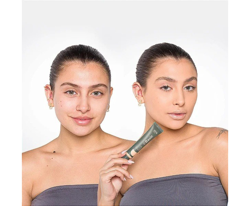 Aplique a Base Líquida Basic no rosto limpo e hidratado. Utilize um pincel, esponja ou os dedos para espalhar uniformemente, começando pelo centro do rosto em direção às extremidades. Construa a cobertura conforme desejado. Desfrute da pele impecável e do cuidado que a Base Líquida Basic proporciona.