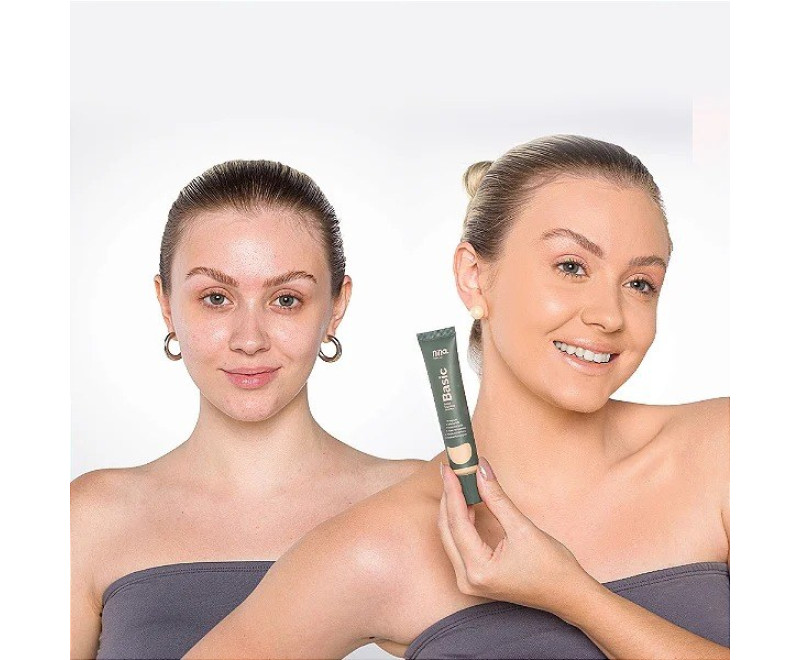 Aplique a Base Líquida Basic no rosto limpo e hidratado. Utilize um pincel, esponja ou os dedos para espalhar uniformemente, começando pelo centro do rosto em direção às extremidades. Construa a cobertura conforme desejado. Desfrute da pele impecável e do cuidado que a Base Líquida Basic proporciona.