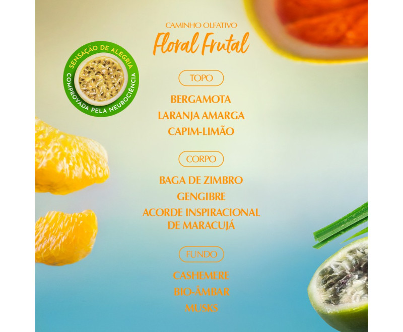 Esta fragrância tecnólogica perfuma e desodoriza a pele com um toque floral frutal. Irradia alegria, boas energias e traz sensação de bem-estar1.
