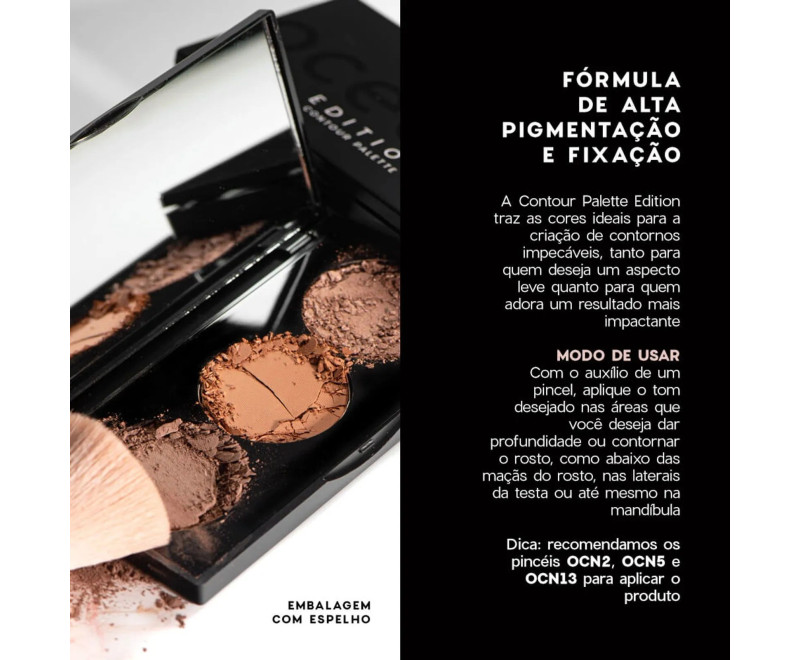 A Contour Palette Edition tem 3 tons incríveis! Com eles, você pode esfumar, espalhar e criar diferentes contornos no seu rosto com facilidade.
