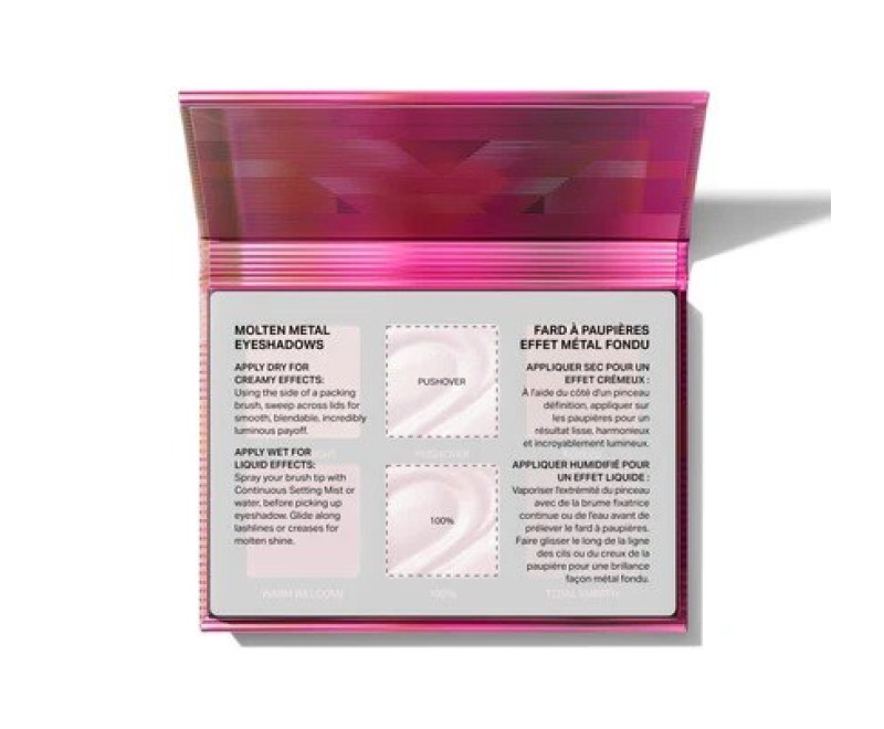 APLIQUE MOLHADO PARA EFEITOS LÍQUIDOS MELHORADOS: Borrife a ponta do pincel , antes de pegar a Molten Metal Eyeshadow. Deslize ao longo das linhas dos cílios ou vincos para um brilho molhado.