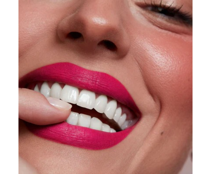 Um batom fosco totalmente carregado de pigmento, que proporciona longa duração, desliza e deixa um acabamento aveludado difuso e macio.