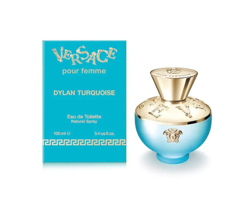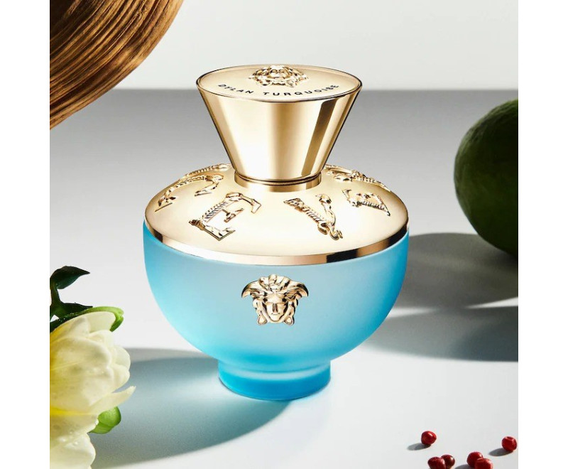 Sobre a garrafa: A garrafa Dylan Turquoise é uma expressão do design inovador da Versace. As curvas elegantes lembram uma ânfora, evocando fortemente a cultura e mitologia grega. O vidro fosco de azul reflete as águas cristalinas do mar e denota um desejo constante de verão. Os detalhes são em ouro pálido e a tampa de alumínio é gravada com a cabeça da Medusa e gravada com o nome da fragrância. As letras em estilo barroco soletram o nome da marca.