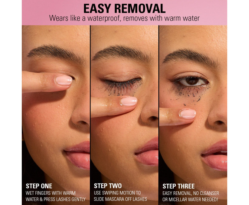 Dica: Devido à tecnologia de longa duração da fórmula, a máscara pode ficar pegajosa até secar. Certifique-se de aplicar camadas extras enquanto a fórmula ainda estiver úmida para evitar grumos e excesso de produto nos cílios.