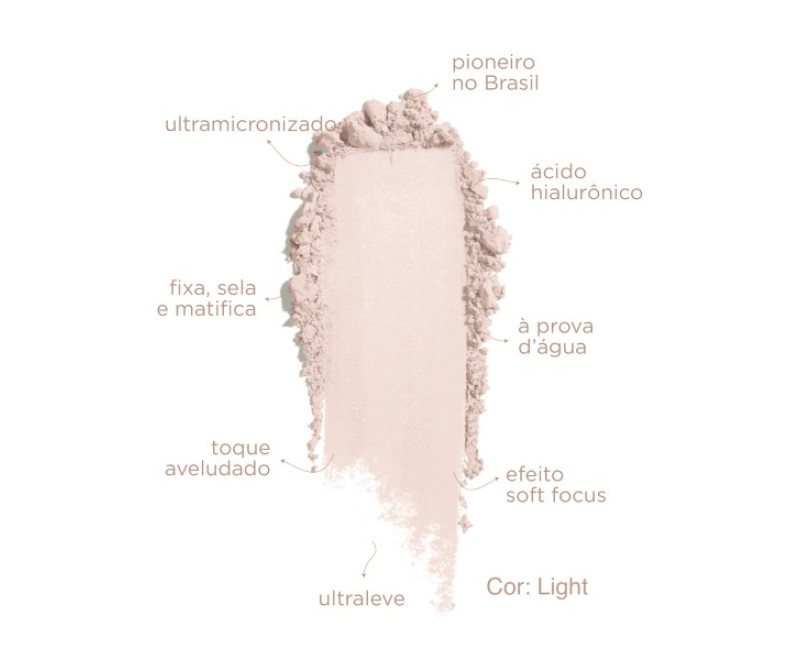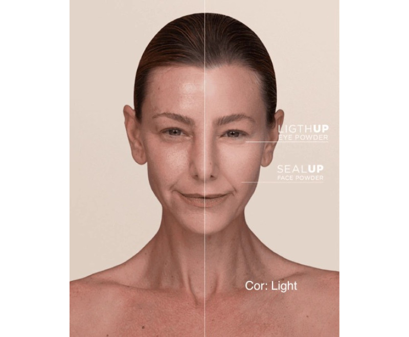LIGHT UP é o verdadeiro e pioneiro pó para a área dos olhos. Sua fórmula exclusiva é enriquecida com Ácido Hialurônico, que auxilia na hidratação da pele. Seu processo de micronização é único, sendo o pó mais fino e leve do mercado. Nosso pó para olhos Light UP matifica, sela e fixa a maquiagem sem evidenciar as linhas finas, trazendo conforto e toque aveludado. Com micropartículas de brilho, que auxiliam na correção das olheiras, promovendo iluminação sem pesar. É à prova d'água, resistente à oleosidade e ao suor, conferindo maior durabilidade à sua maquiagem.