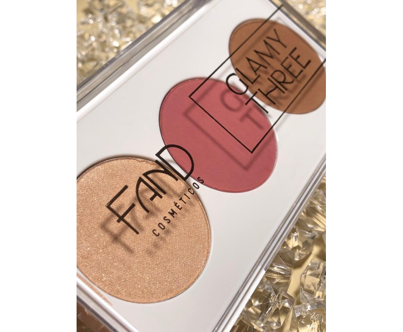 trio de contorno, blush e iluminador