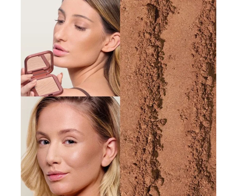 Bronzeador em pó versátil com textura macia e fácil de esfumar. Contém pérolas ultrafinas e pigmentos soft focus que suavizam a textura da pele, iluminam e proporcionam efeito glow radiante para um bronzeado tropical deslumbrante. Pode ser utilizado também como iluminador, contorno ou sombra.
