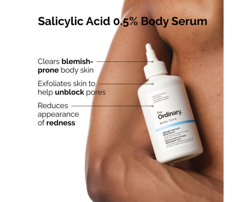 O Sérum Corporal com Ácido Salicílico 0,5% foi desenvolvido para peles com tendência a acne, visando irregularidades na textura para uma pele com aparência mais clara e suave.
