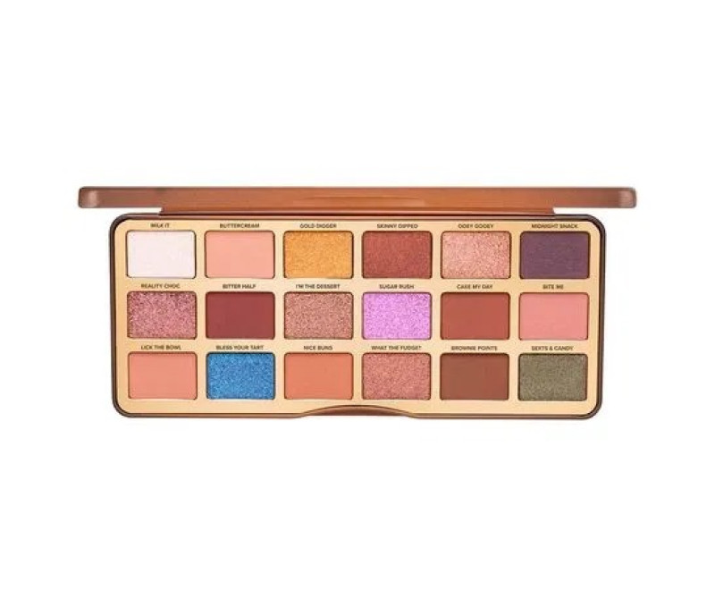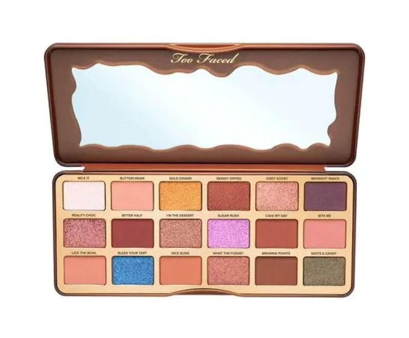 Paleta de sombras de 18 cores inspiradas em chocolate. O cofundador e diretor de criação da Too Faced, Jerrod Blandino, queria criar uma paleta de chocolate atualizada e modernizada que cheirasse tão bem quanto parecesse! O que mais você precisa saber? - 18 tonalidades multi-acabamento exclusivas - Sombras ricas e de alta pigmentação oferecem retorno de cores reais - Fórmula suave e sedosa que se mistura facilmente - Cheira a bolo de chocolate derretido! Modo de Uso: Passo 1: Passe primer na pálpebra com uma quantidade do tamanho de uma ervilha do nosso Shadow Insurance usando a ponta do dedo limpa ou um pincel de sombra plano. Passo 2: Defina a marcação com um tom fosco usando um pincel de esfumar fofo. Coloque a ponta do pincel na marcação começando do canto externo esmufando levemente até o canto interno. Passe mais de uma camada para intensidade de cor. Sobre a Marca: A Too Faced é uma marca de maquiagem séria que sabe como se divertir. Acreditamos que maquiagem é um poder, dá as pessoas a liberdade de expressão de ser quem quiser e a confiança para conquistar o mundo. Com a abordagem exuberante em tudo que fazemos, nós usamos ingredientes nobres para criar cosméticos inovadores e cruelty-free que todos amam usar. Crie seus próprios looks, encontre o que você ama e SEJA DONX DA SUA BELEZA.