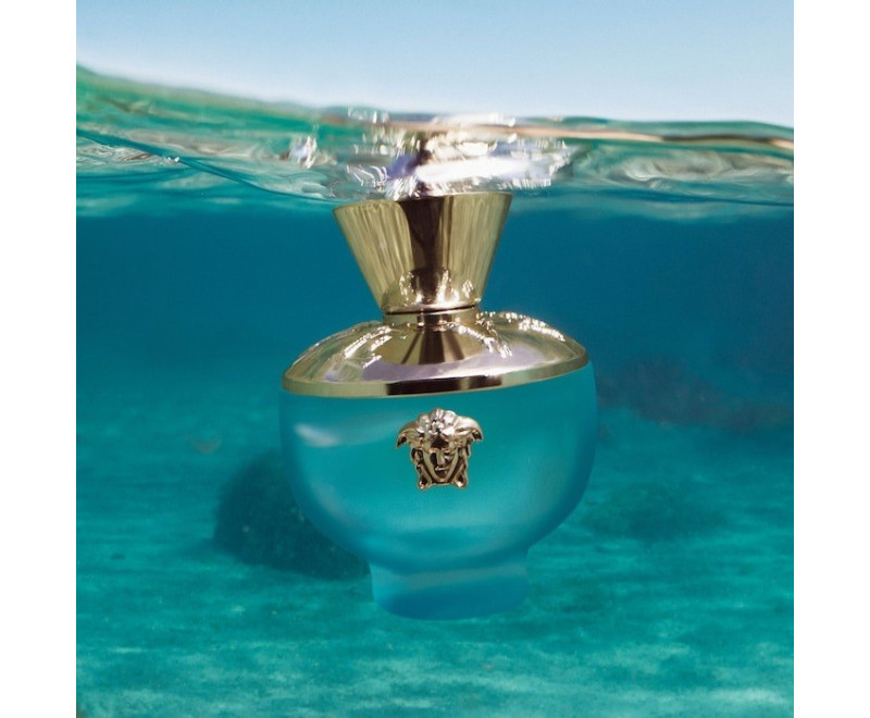 Sobre a garrafa: A garrafa Dylan Turquoise é uma expressão do design inovador da Versace. As curvas elegantes lembram uma ânfora, evocando fortemente a cultura e mitologia grega. O vidro fosco de azul reflete as águas cristalinas do mar e denota um desejo constante de verão. Os detalhes são em ouro pálido e a tampa de alumínio é gravada com a cabeça da Medusa e gravada com o nome da fragrância. As letras em estilo barroco soletram o nome da marca.