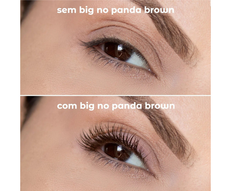 A máscara para cílios Marrom BIG NO PANDA BROWN possui uma pigmentação marrom que deixa um look sofisticado e delicado nos cílios, valorizando ainda mais a seu make. Com a tecnologia NO PANDA que não mancha os olhos e sai em forma de película com água morna. Seu aplicador BIG proporciona curvatura e volume, valorizando o olhar.