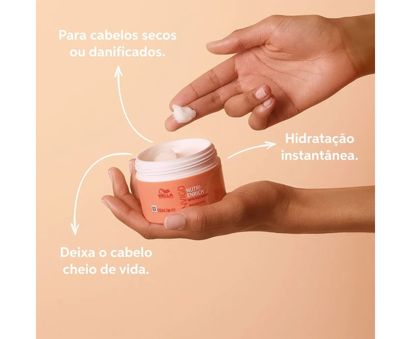 Máscara de tratamento para cabelos secos, ressecados ou com química. Wella Professionals Invigo Nutri-Enrich Mask hidrata e nutre profundamente para restaurar a saúde dos fios e ainda garantir um toque sedoso e muito brilho. Tamanho profissional.